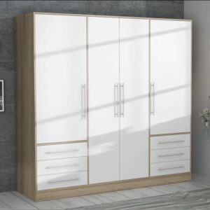 MEU0243 Jupiter Armoire - Chêne et blanc - L 206 x P 60 x H 200 cm