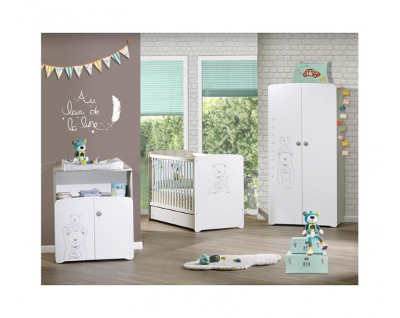 - Matière : Panneau de fibres de moyenne densité (MDF) laqué blanc avec sérigraphie "Teddy"