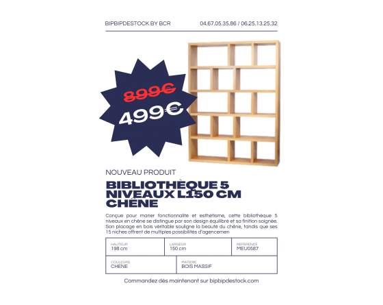 0-001MEU0587 Bibliothèque 5 niveaux L150 cm Chêne