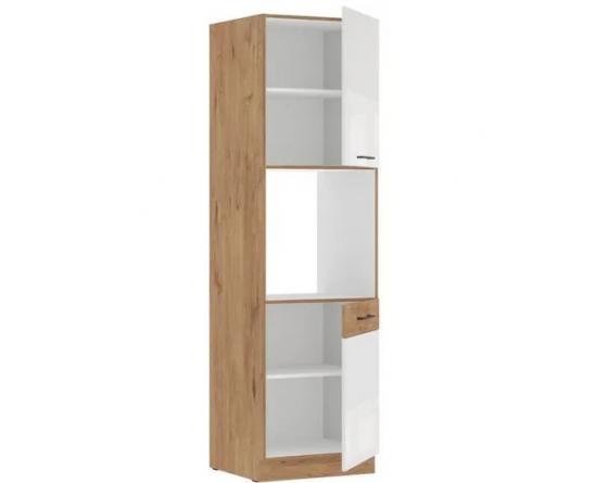 MEU0591 Colonne Four Mélaminé chêne et Blanc brillant - 60 cm - 2 portes