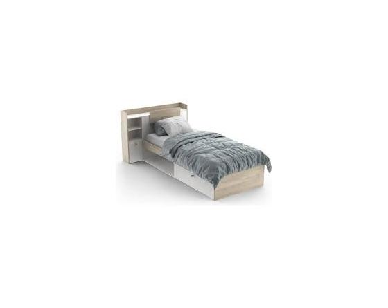 LIT0456 Lit enfant - 90x190/200 - Rangements - Décor Chêne et blanc - Fabriqué en France