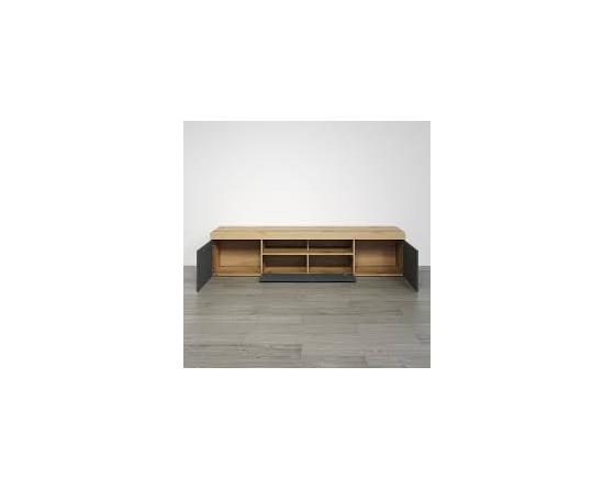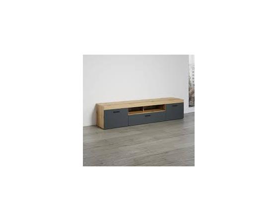 MEU0598 Meuble TV - Gris anthracite mat / chêne miel - 230 x 52 x 52 cm