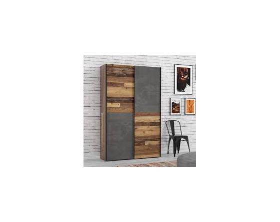 MEU0606 Armoire 2 portes coulissantes multifonction - Bois et béton gris L 120 x P 41,6 x H 190,5 cm