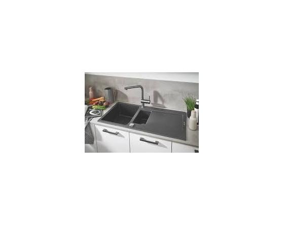DIV0165 GROHE Evier de cuisine composite avec égouttoir K500, 1000 x 500 mm, 2 bacs, vidage pratique, siphon et bonde inclus, noir,