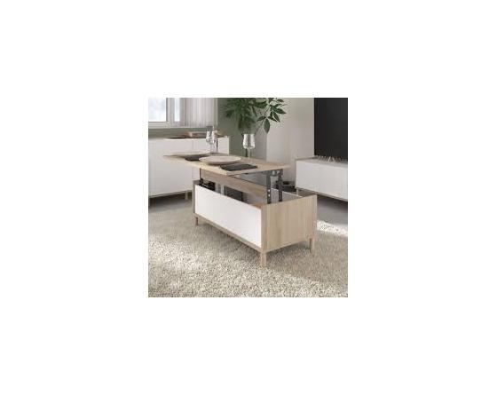 MEU0621 Table basse relevable MORPHOS - L 100 x P 50 x H 43,6 cm - Rectangulaire - Décor blanc / Chêne - PARISOT