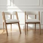 MEU0588 LOT DE 2 Fauteuils - chêne massif et tissu bouclette