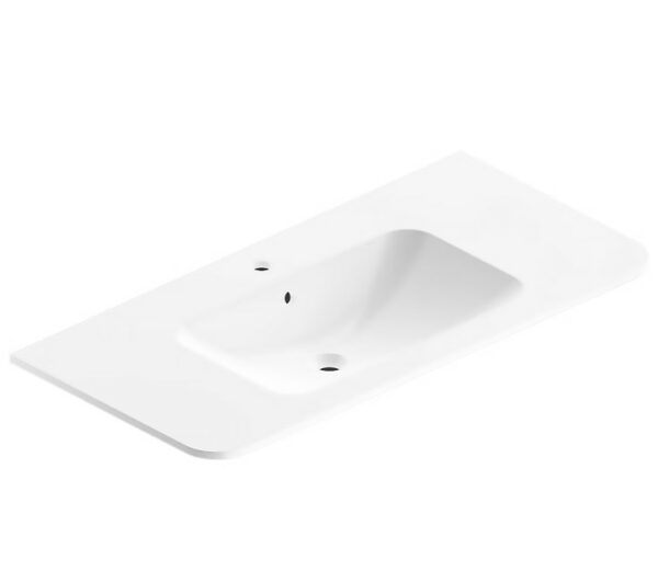 DIV0154 Plan simple vasque à encastrer résine blanc brillant Alba version centre 106 cm