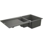 DIV0165 GROHE Evier de cuisine composite avec égouttoir K500, 1000 x 500 mm, 2 bacs, vidage pratique, siphon et bonde inclus, noir,