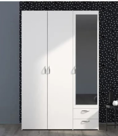 MEU0367 Armoire VARIA - Décor blanc - 3 portes battantes + miroir + 2 tiroirs - L 120 x H 185 x P 51 cm