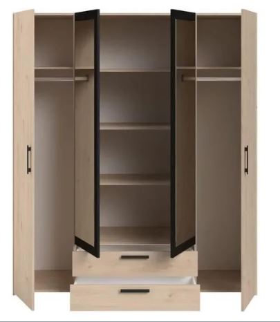 MEU0520 Armoire 4 portes battantes + 2 tiroirs - L 160 x H 185 x P 51 cm