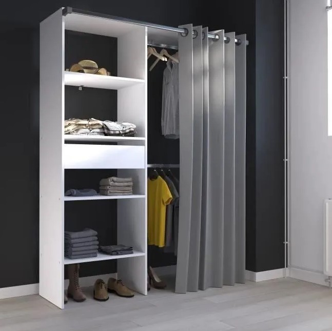 MEU0349 Dressing avec rideau - 1 colonne avec 1 tiroir + 2 penderies - L 143,5 X P 48 X H 181,9 cm