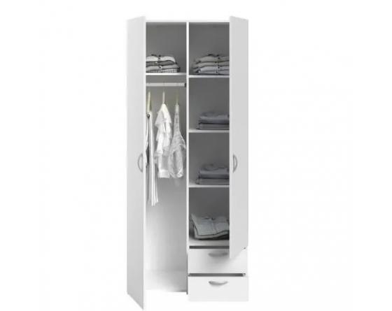 MEU0359 Armoire blanche - 2 portes battantes + 2 tiroirs - L 81 cm x H 185 x P 51 cm