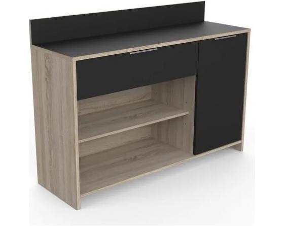 - Les façades ainsi que le dessus « style crédence » sont de coloris noir, les côtés et les niches sont de couleur chêne.