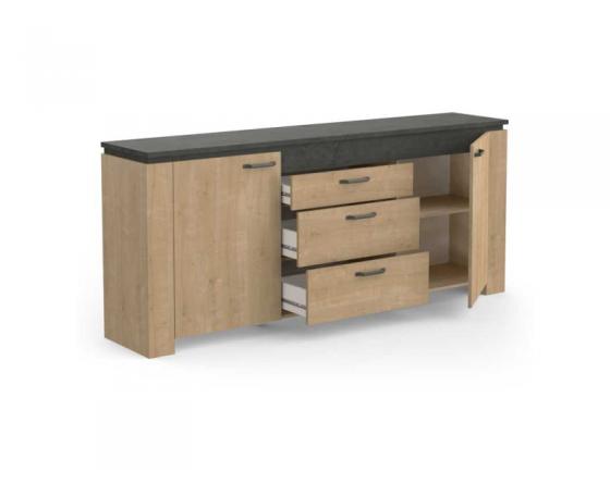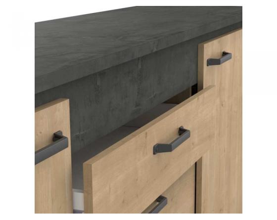 - Meuble bas 2 portes 3 tiroirs bois béton ciré