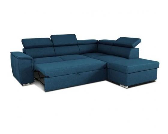 CAN0477 Canapé d'angle convertible réversible avec coffre - Tissu bleu - 260 x 94 x 216 cm