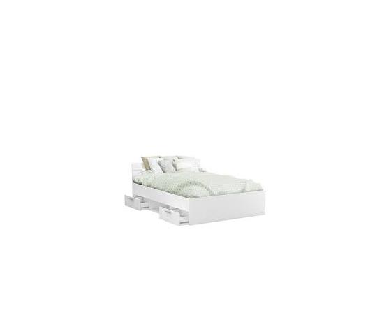 LIT0455 Lit adulte - 140 x 190 cm - Multiples rangements – Blanc