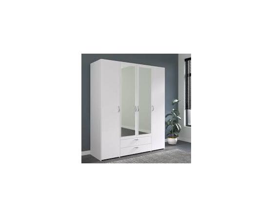 MEU0607 Armoire - Décor blanc - 4 portes battantes + 2 miroirs + 2 tiroirs - L 160 x H 185 x P 51 cm